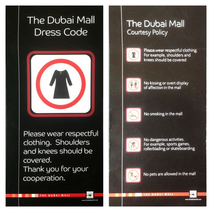 - Συμπεριφορά σε δημόσιους χώρους: Κάποιοι περιορισμοί είναι απαραίτητοι στην προσωπική συμπεριφορά σε δημόσιους χώρους - η μέθη και η ανοικτή εκδήλωση συναισθημάτων προσβάλλουν τα μουσουλμανικά ήθη και είναι παράνομα.